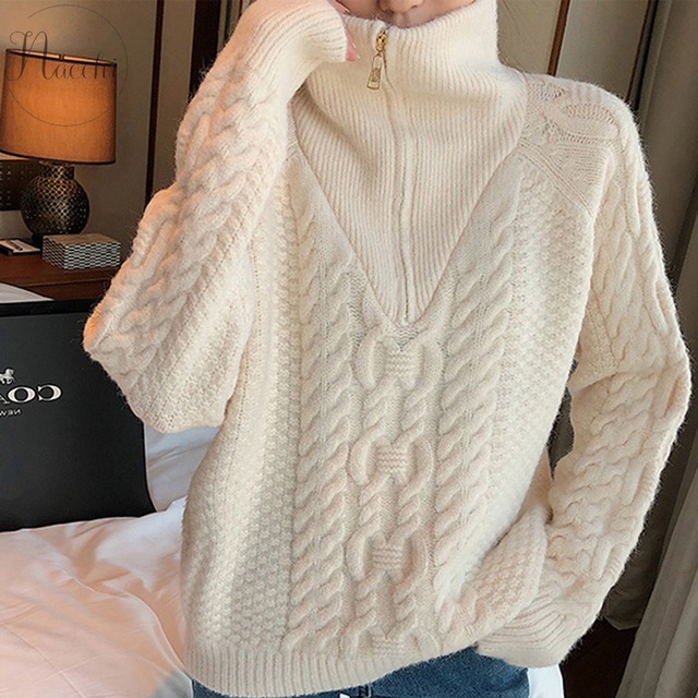 レディース トップス ネック ジッパー セーター