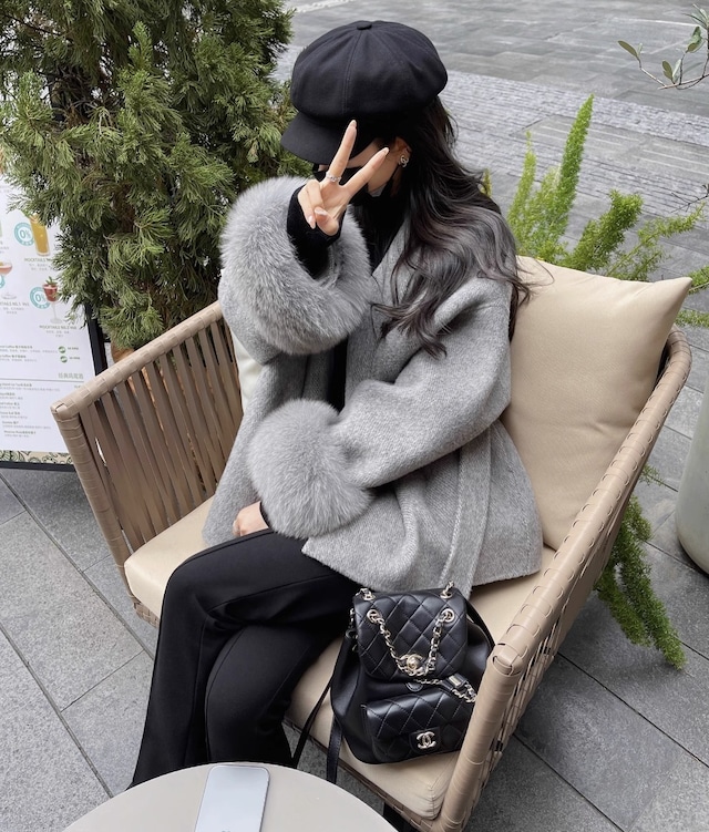 フォックスファー ウールコート ウエスト ベルト