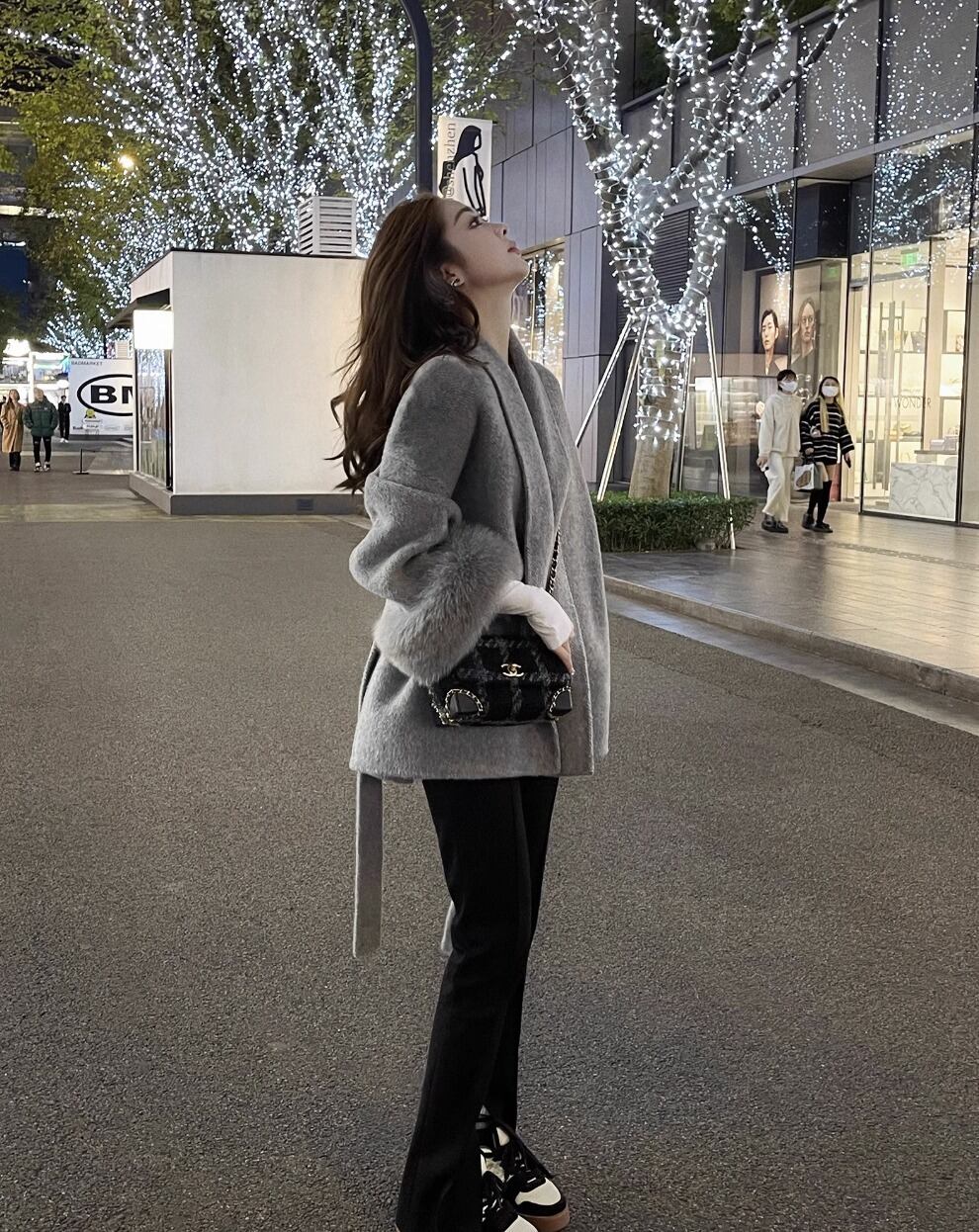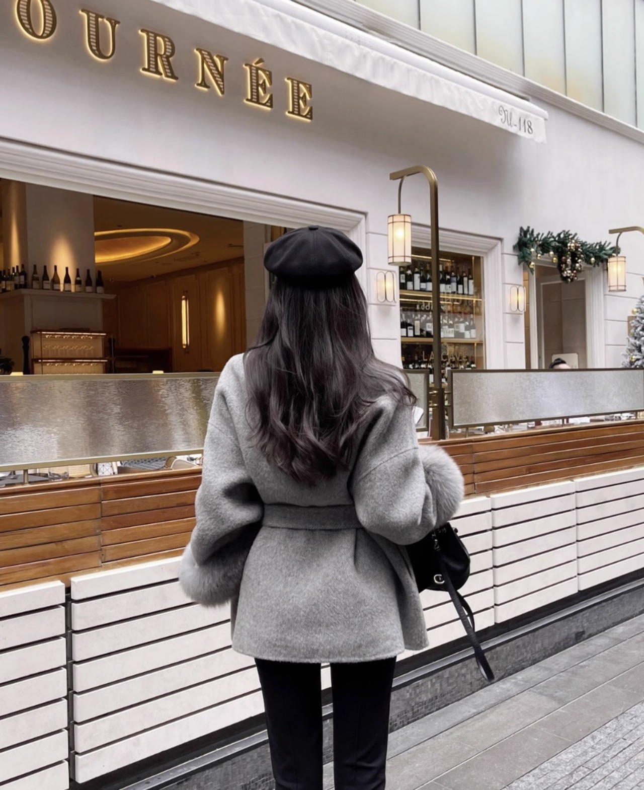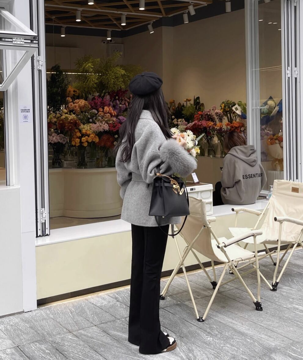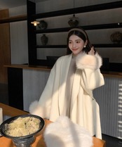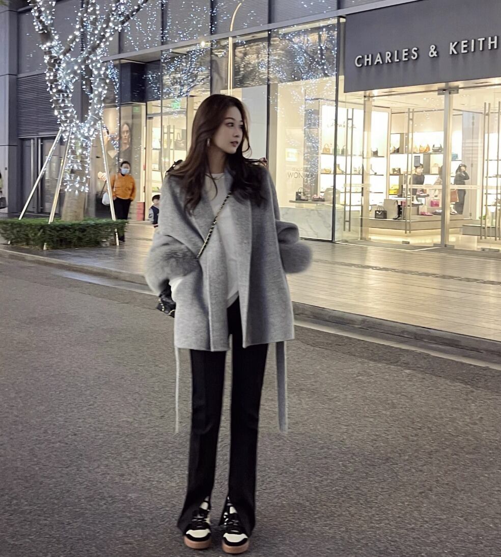 フォックスファー ウールコート ウエスト ベルト