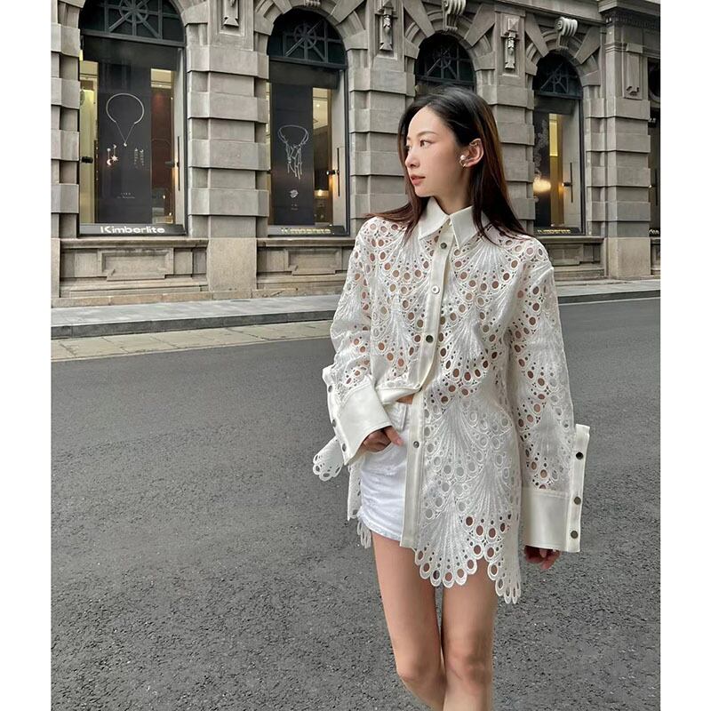 レトロ 刺繍 ホワイト シャツ ミディ丈