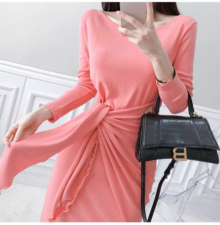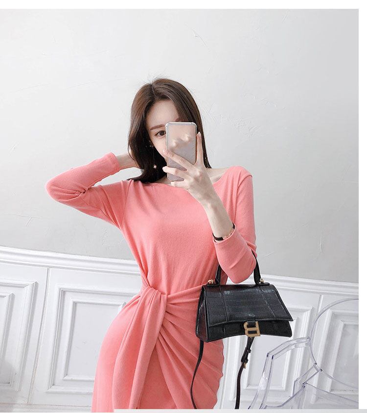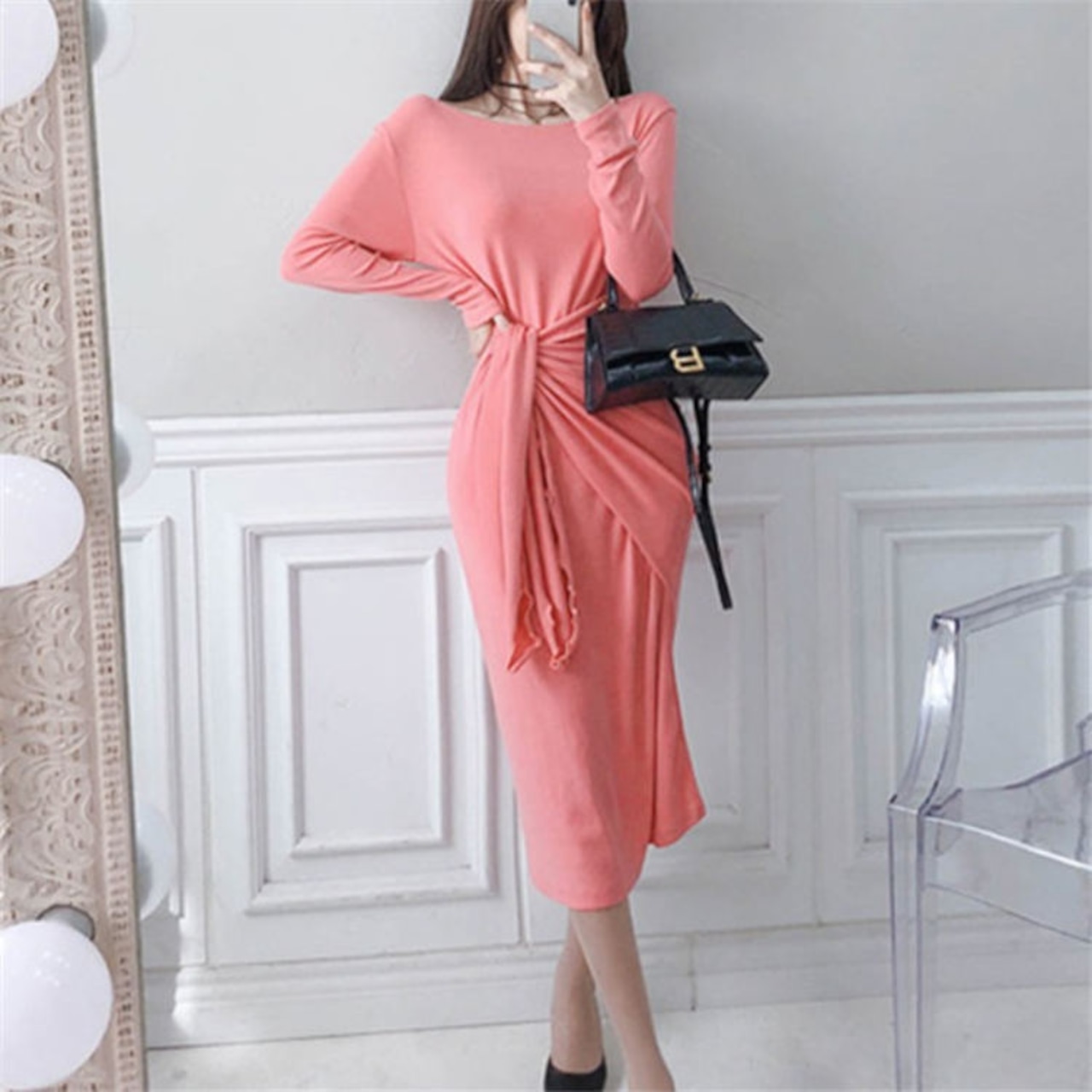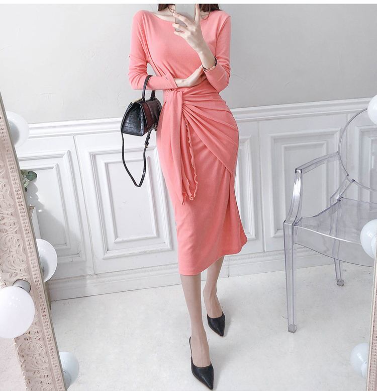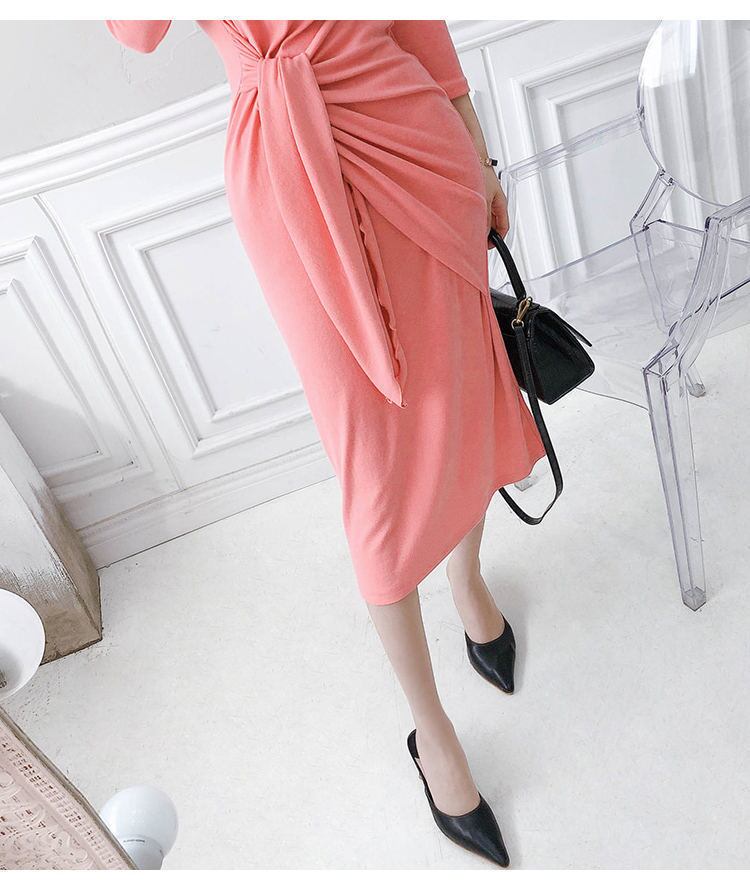 ワンピース 長袖 レディース ピンク S-LL Vネック フェミニン 大人 タイト エレガント 結婚式 クラブ 韓国 ファッション コーデ おすすめ カジュアル きれいめ 大きいサイズ 人気 ゆったり 20代 30代 40代 50代