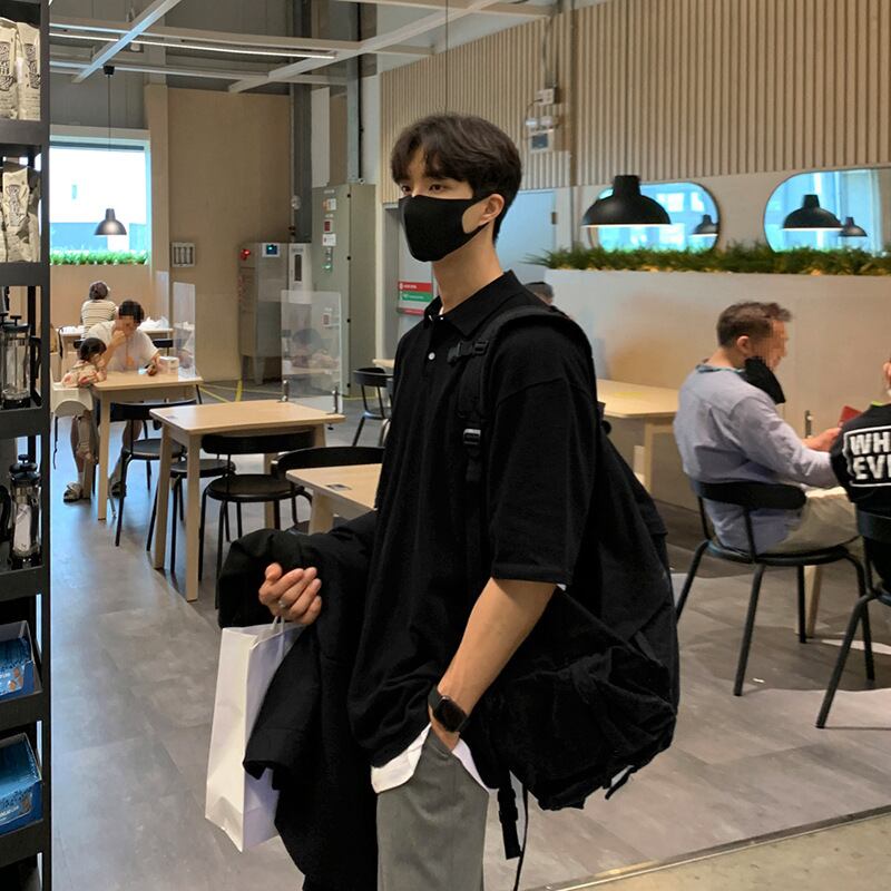 3色 ポロシャツ カジュアル ゴルフ ルーズ トップス 無地 半袖 5