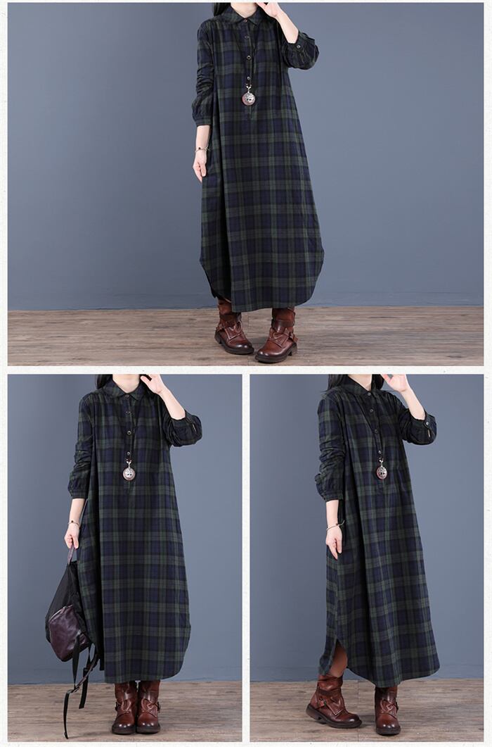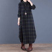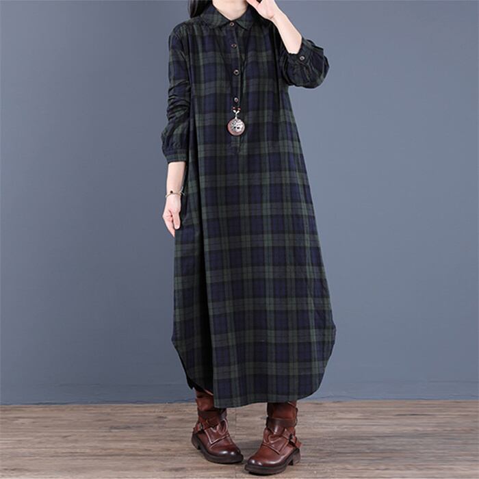 ★特徴:春秋シーズンに最適なシャツワンピースが新登場!長袖デザインとトレンディなチェック柄が魅力の一枚。Mから2XLまでのサイズ展開で、さまざまな体型にフィットし、マキシ丈が大人の女性らしさを引き立てます。カジュアルながらもおしゃれを楽しめるこのワンピースは、デイリーユースからお出かけまで幅広く活躍すること間違いなしです。