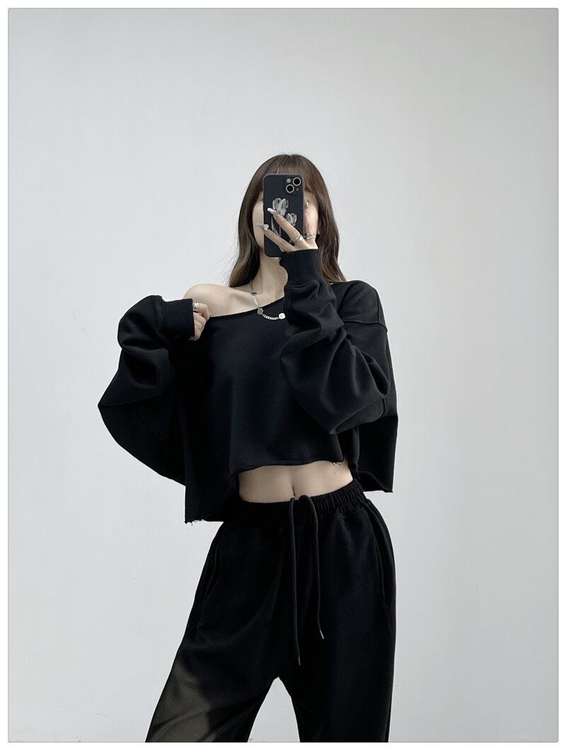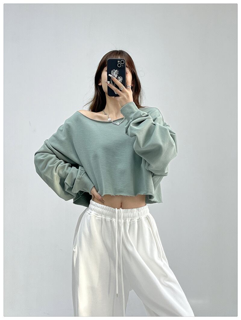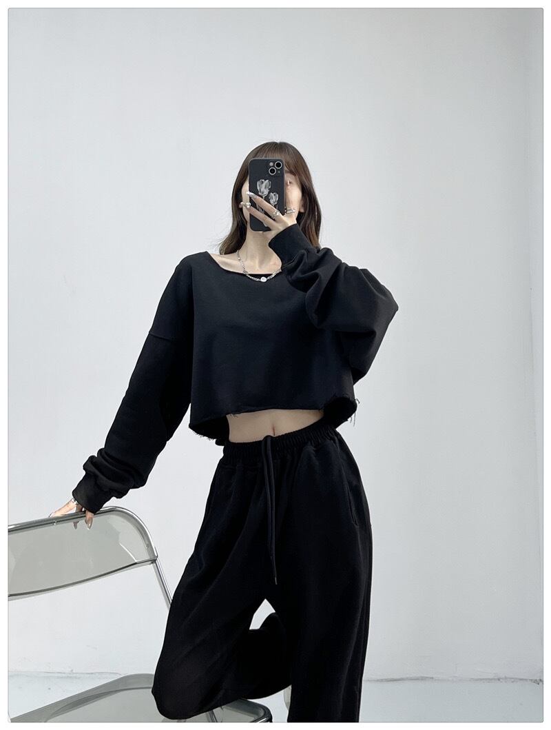 無地スウェットトレーナートップスダンス服ゆったり