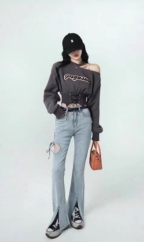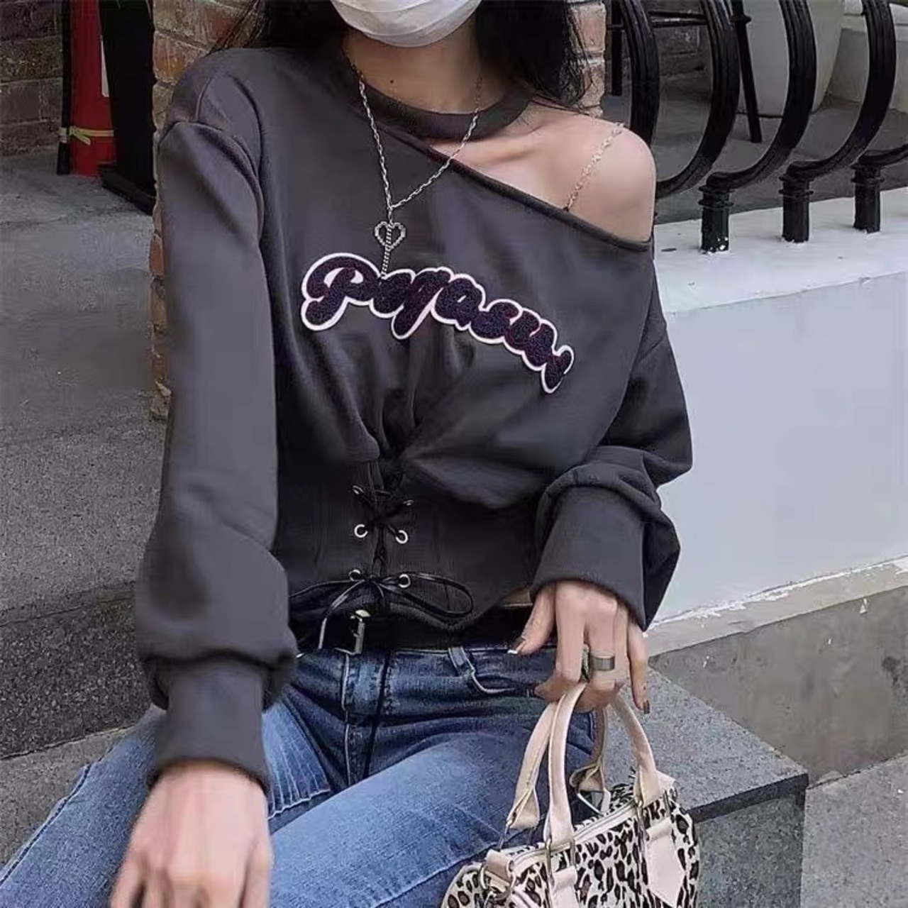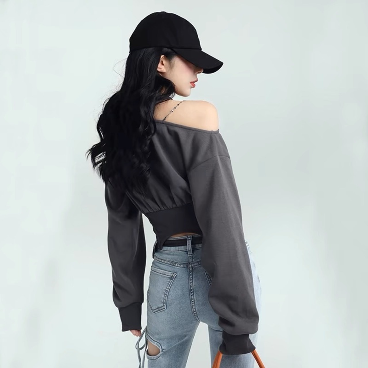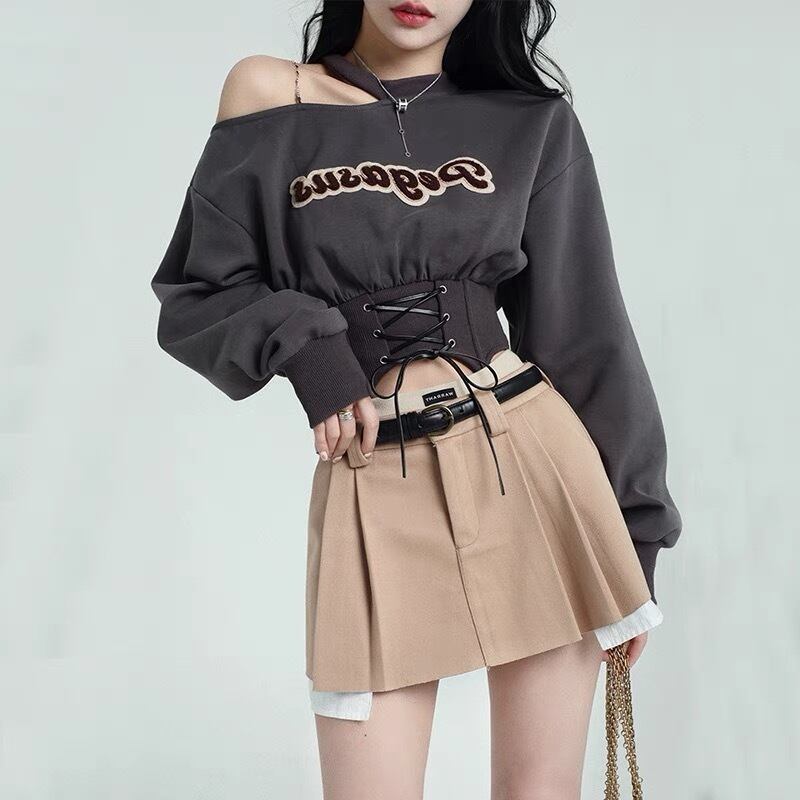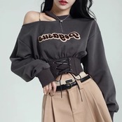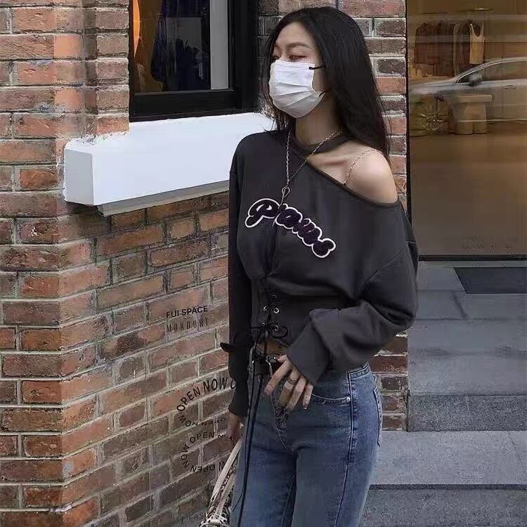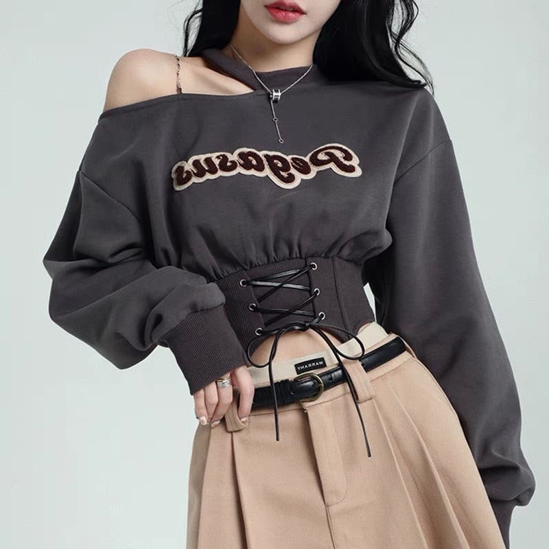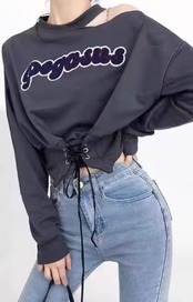 ホルターネック長袖スウェットトレーナーショート春秋おしゃれ
